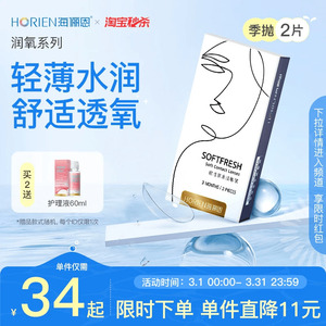 【淘宝秒杀】海俪恩隐形眼镜季抛2片润氧近视透明镜片旗舰店正品 | ¥34 | 减11元 | 0 | 天猫 |
